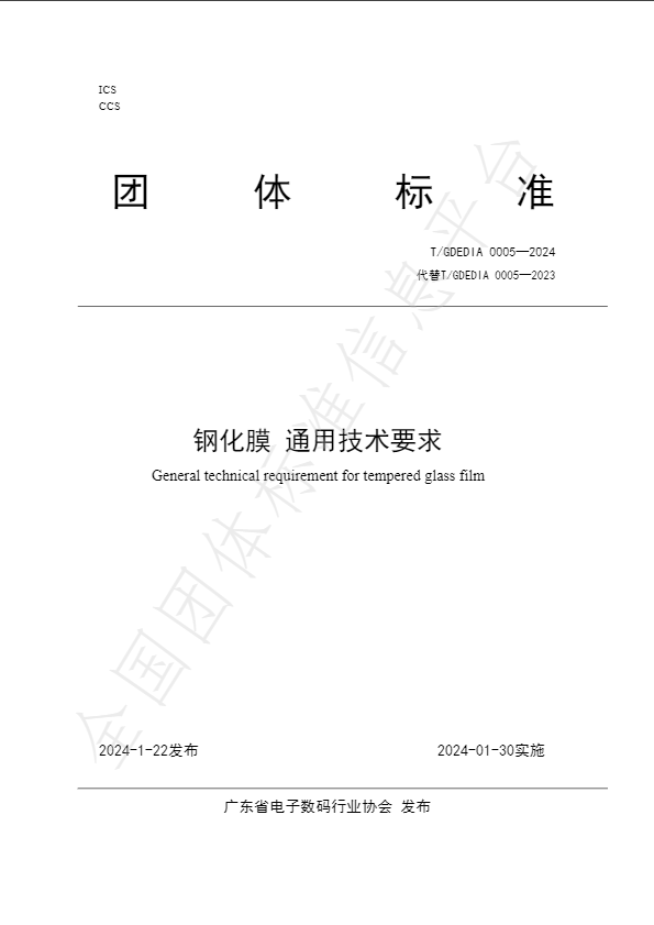 2024年01月22日,《钢化膜 通用技术要求》发布并于2024年01月30日正式实施。