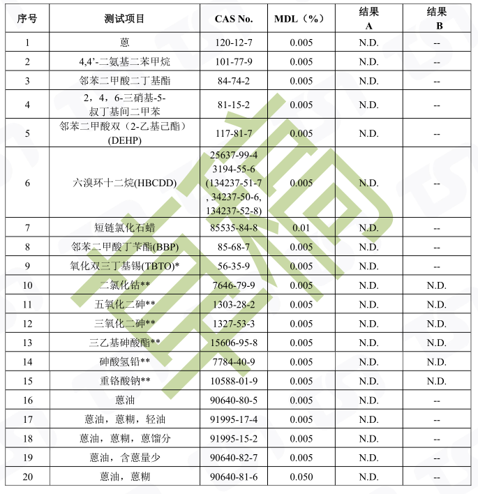 欧盟REACH检测目前更新为240项有害物质测试: